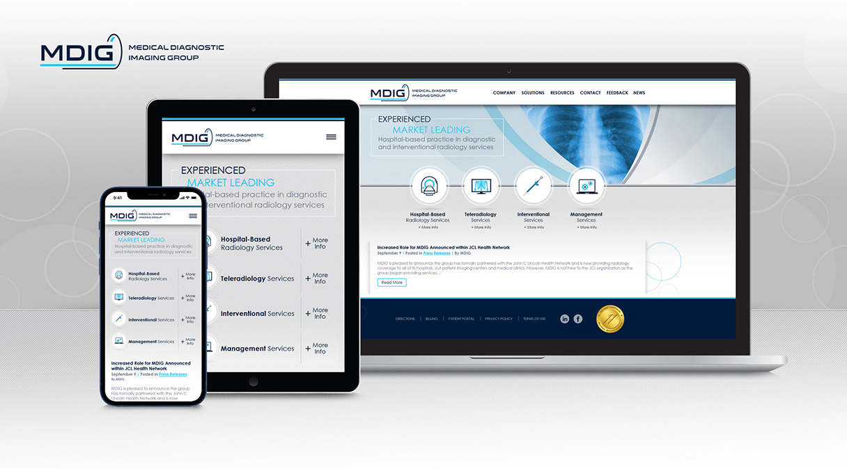 Description: The homepage includes an interactive services highlight feature to capture attention and drive patients further into the website for more detailed information about each specialty. The website was also built with two secure member-only areas for employees and radiologists to login and access essential tools and resources. The Careers section integrates applicants’ ability to easily search for open positions within the practice and apply by uploading their resume directly into the system.