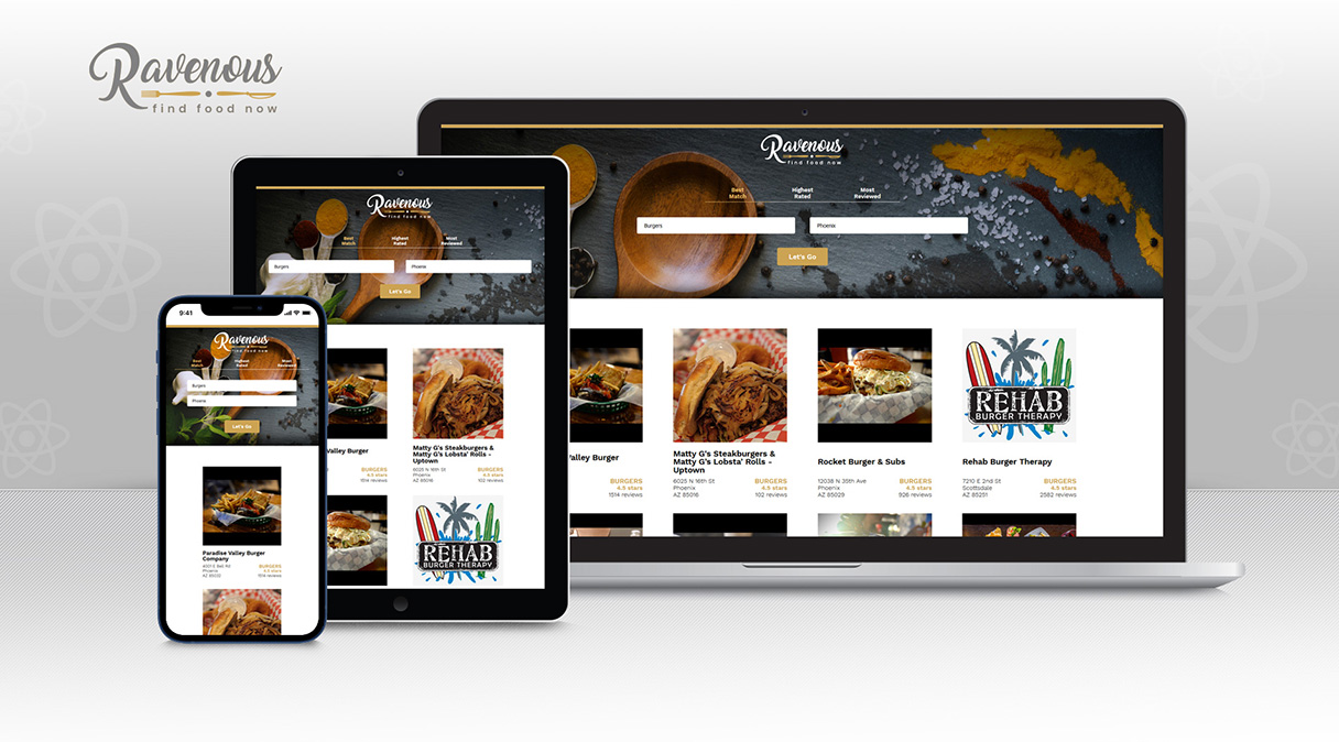 Description: Ravenous makes it possible for users to easily search for restaurants by business name, food type, and location. Search criteria can also be displayed by best match, highest rated, or most reviewed.